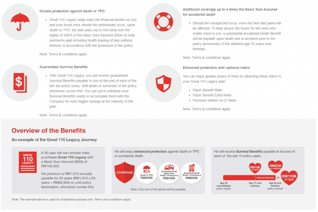 Providing added protection against the unexpected, the plan is specially designed to endow you with extra benefits for a greater future. With Great 110 Legacy, you can confidently embrace all of life’s possibilities with a legacy that lets you go further towards realising your dreams.